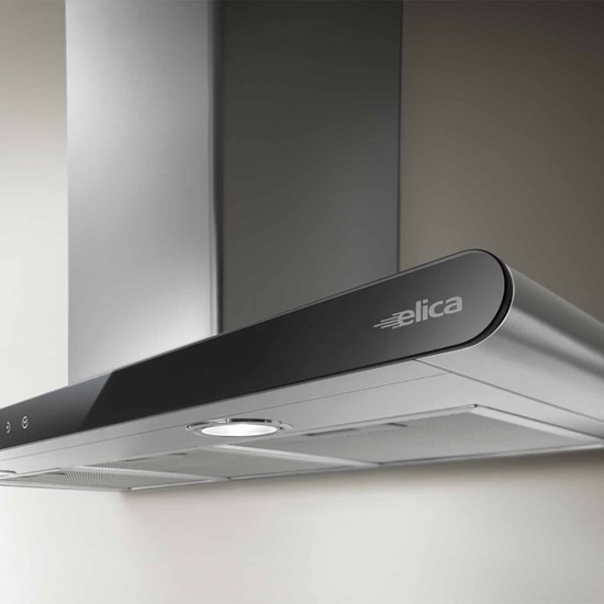 Väggmonterad fläkt - Med inbyggd motor - Rostfritt stål / svart glas - Bredd 800 mm