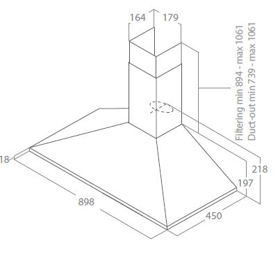 - Produkt (BxDxH) 900 x 450 x 739 - 1061 mm