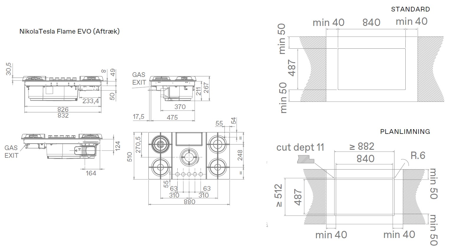 - Inbyggnads (BXDXH): 840 x 487 mm
