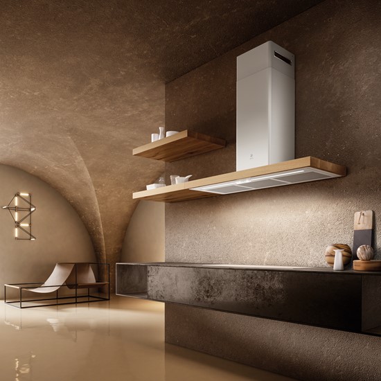 Väggmonterad fläkt - Med inbyggd motor - Satin white / ekträ - Bredd 900 mm - Energiklass A+