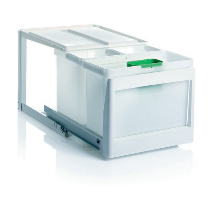 Eico 3SK möjliggör effektiv sortering med 2 × 10 L + 1 × 16 L hinkar. Passar i 50 cm skåp och kan kombineras med dörrmekanism för automatisk utdrag.