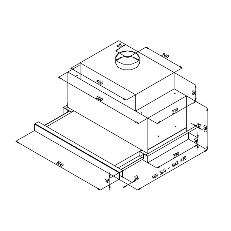 - Produkt (BxDxH) 600 x 320 - 470 x 230 mm