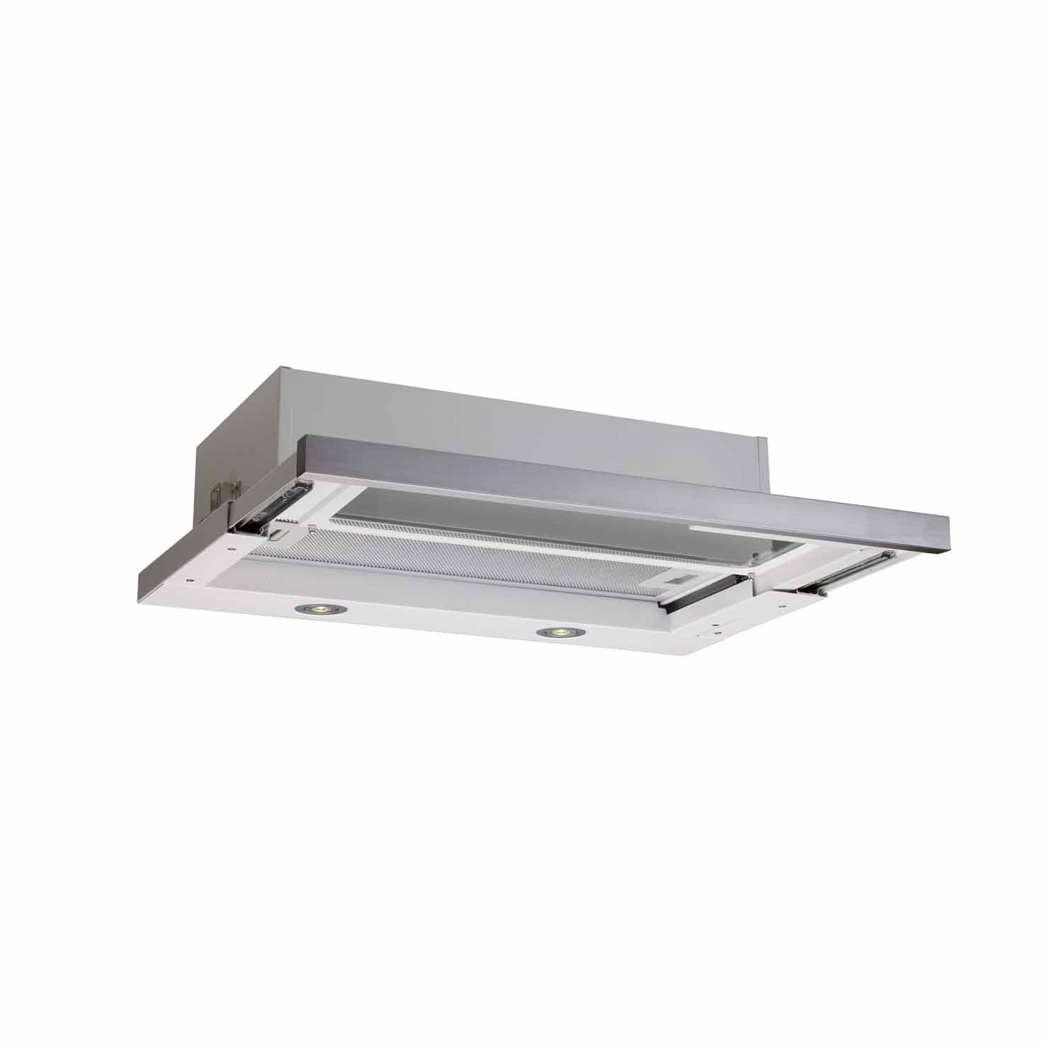 Utdragsfläkt. Med inbyggd motor - Rostfritt stål / vit / glas - 600mm