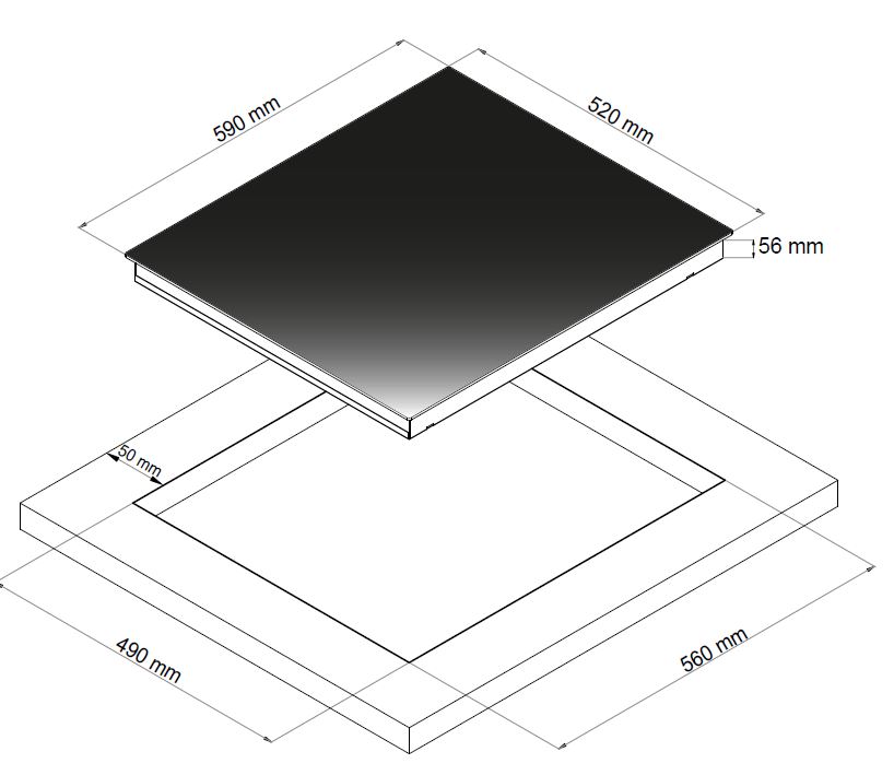 Induktionshäll. Med rak kant - Svart - 590mm