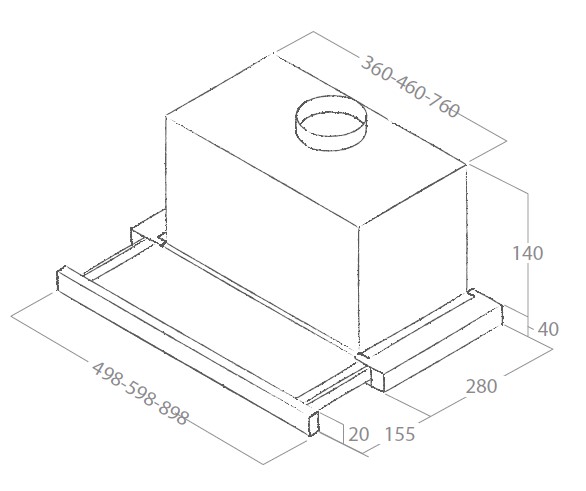 Utdragbar fläkt - Med inbyggd motor - Svart - Bredd 500 mm