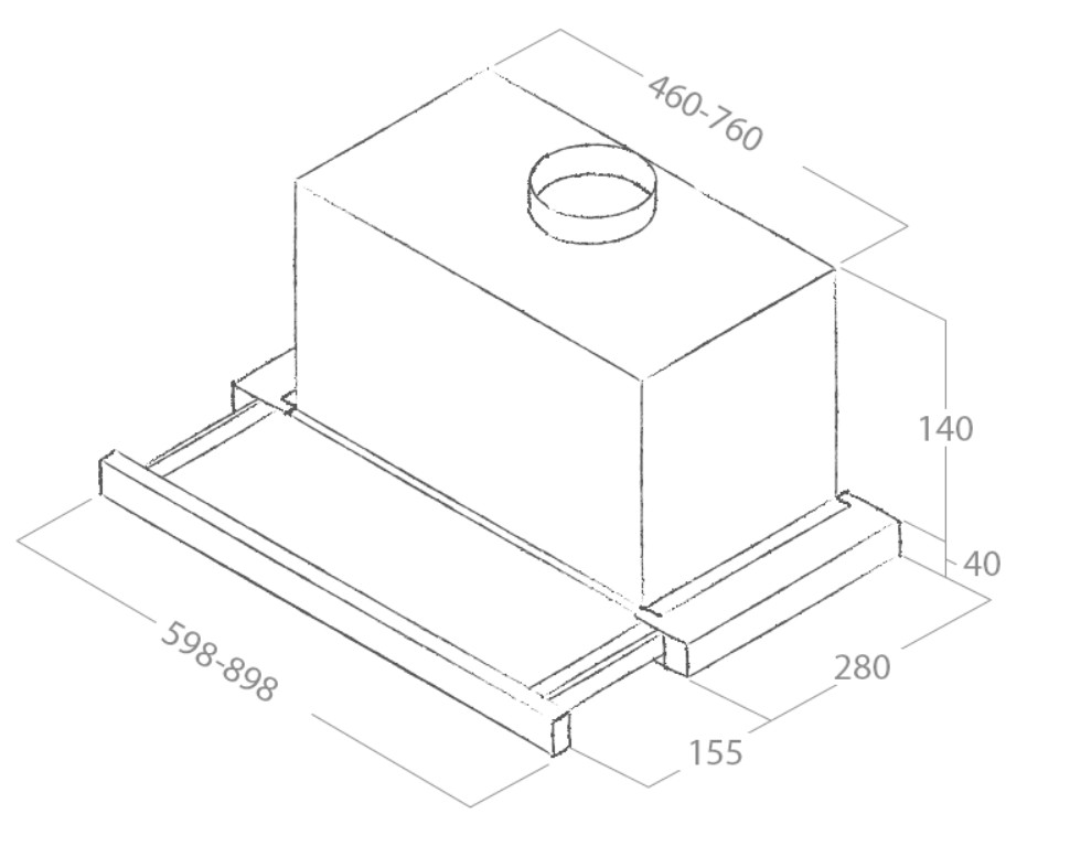Utdragbar fläkt - Med inbyggd motor - Stål - Bredd 900 mm