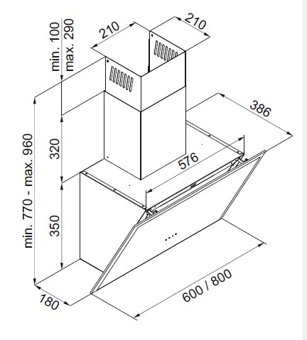 Vægmonteret emfang, skråtstillet. Med intern motor - Sort / sort glas - 600 mm - A+
