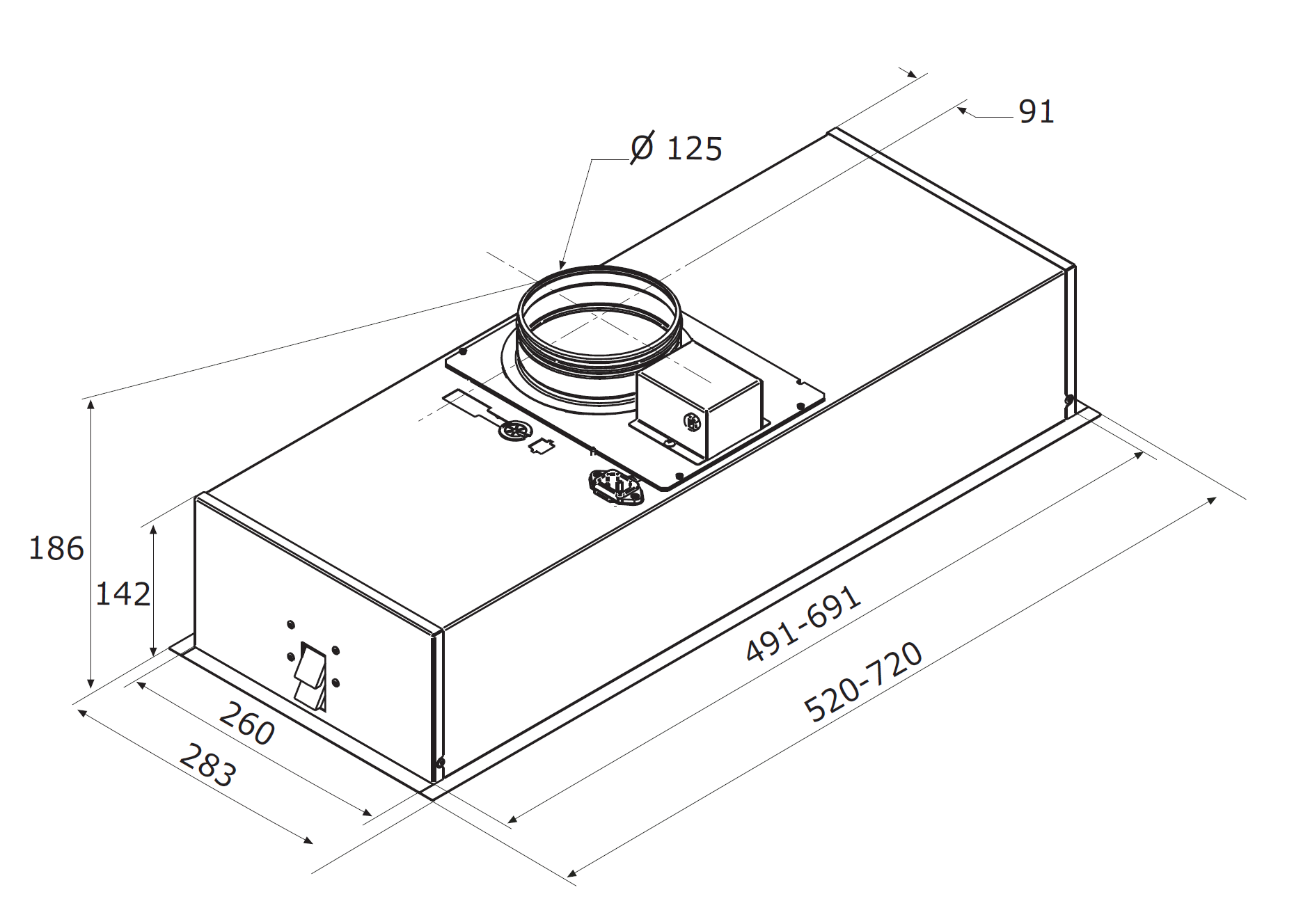 - Produkt (BxDxH) 720 x 283 x 186 mm