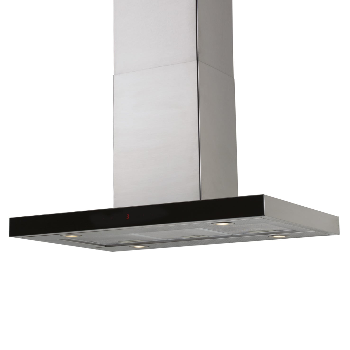 Frihängande köksfläkt. Med extern motor för invändig montering - Rostfritt stål / svart glas - 900mm