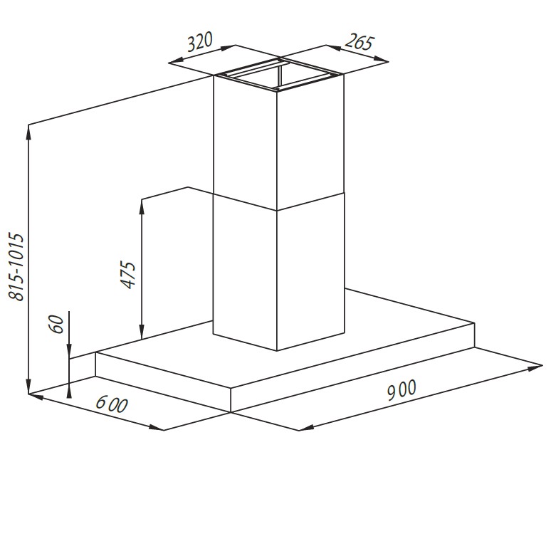 - Produkt (BxDxH) 900 x 600 x 815 - 1015 mm