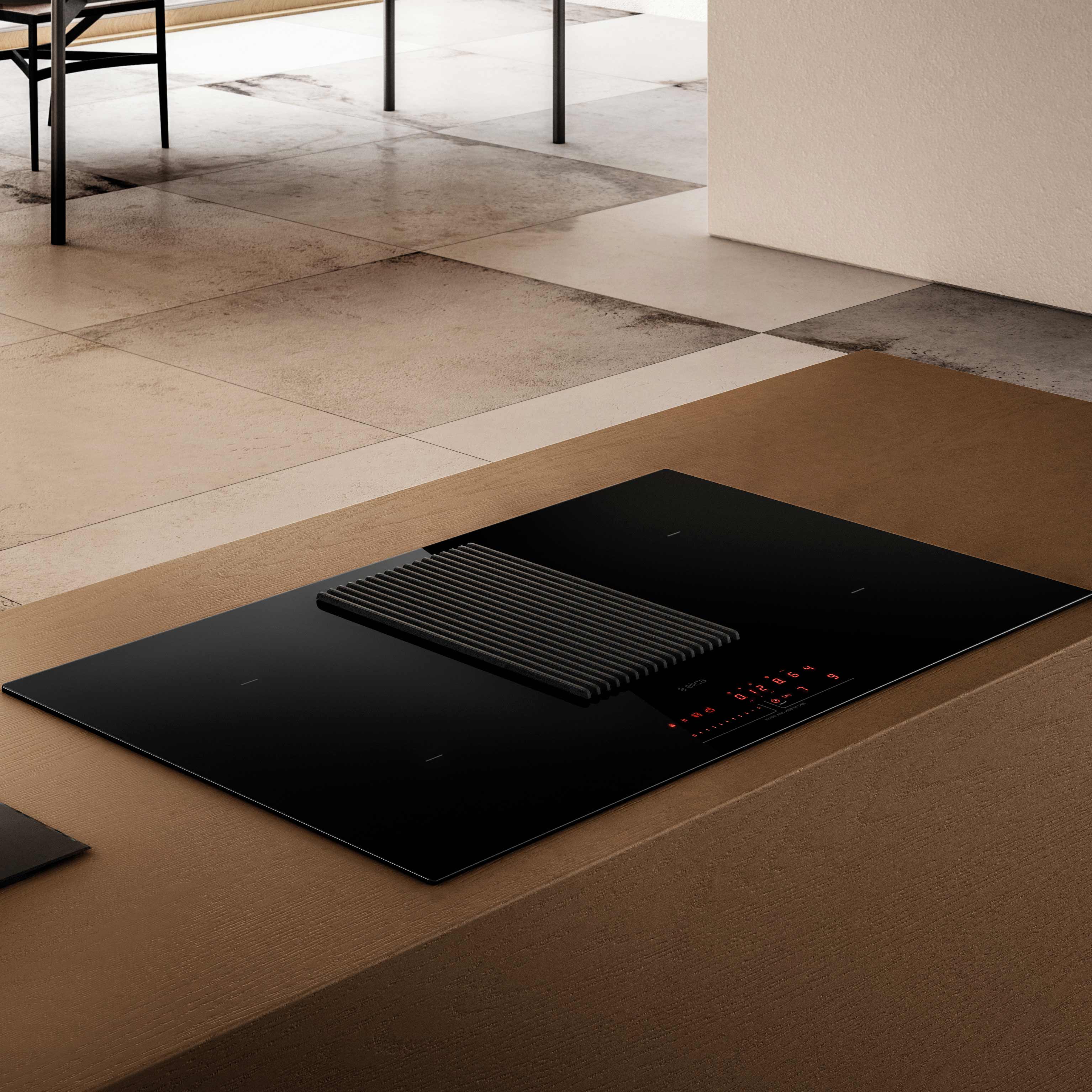 Den intelligenta styrningen justerar sugstyrkan, beroende på hur många av hällens zoner som är igång och på vilken nivå de är inställda på