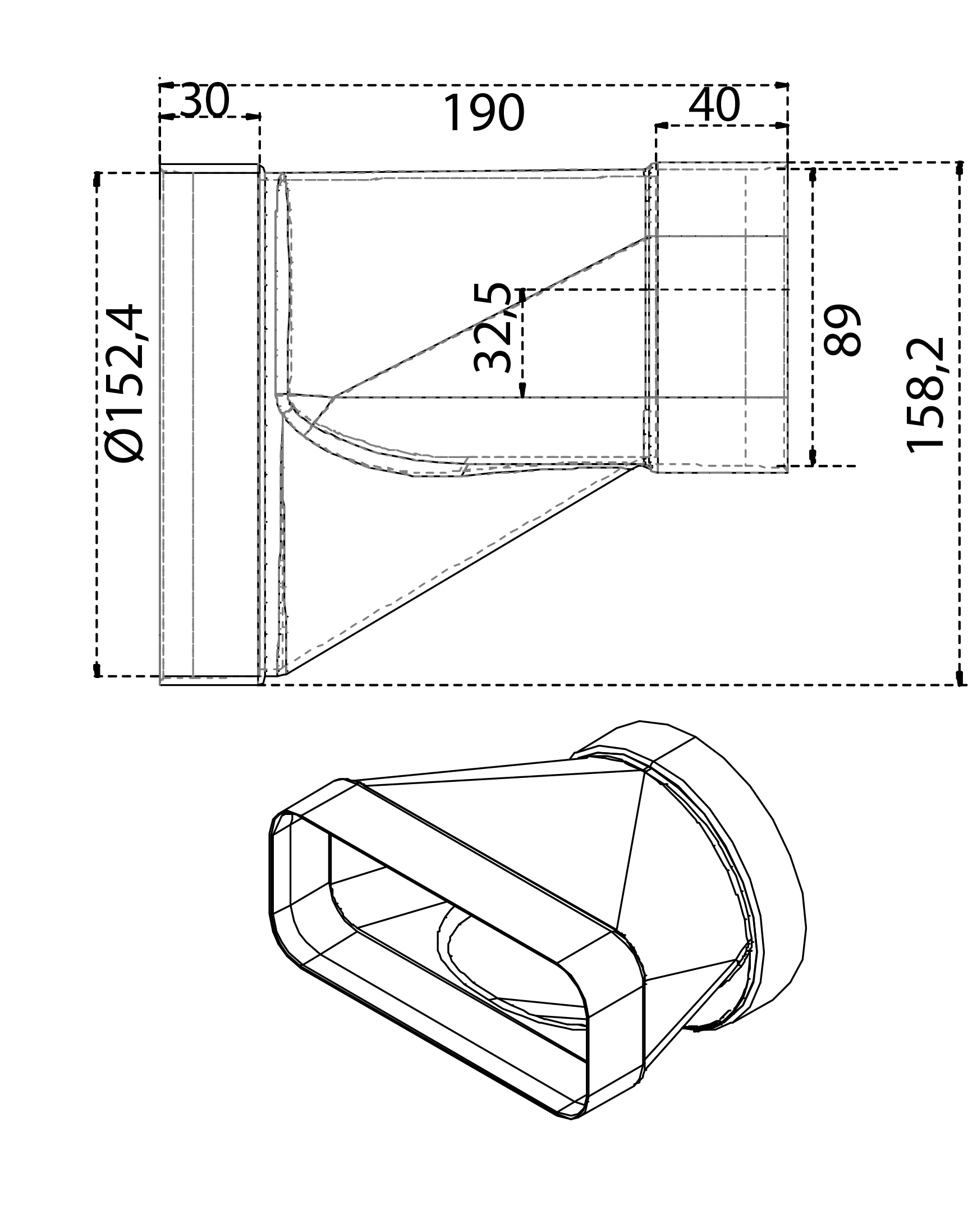 Overgangsstuds 90x220, Ø150