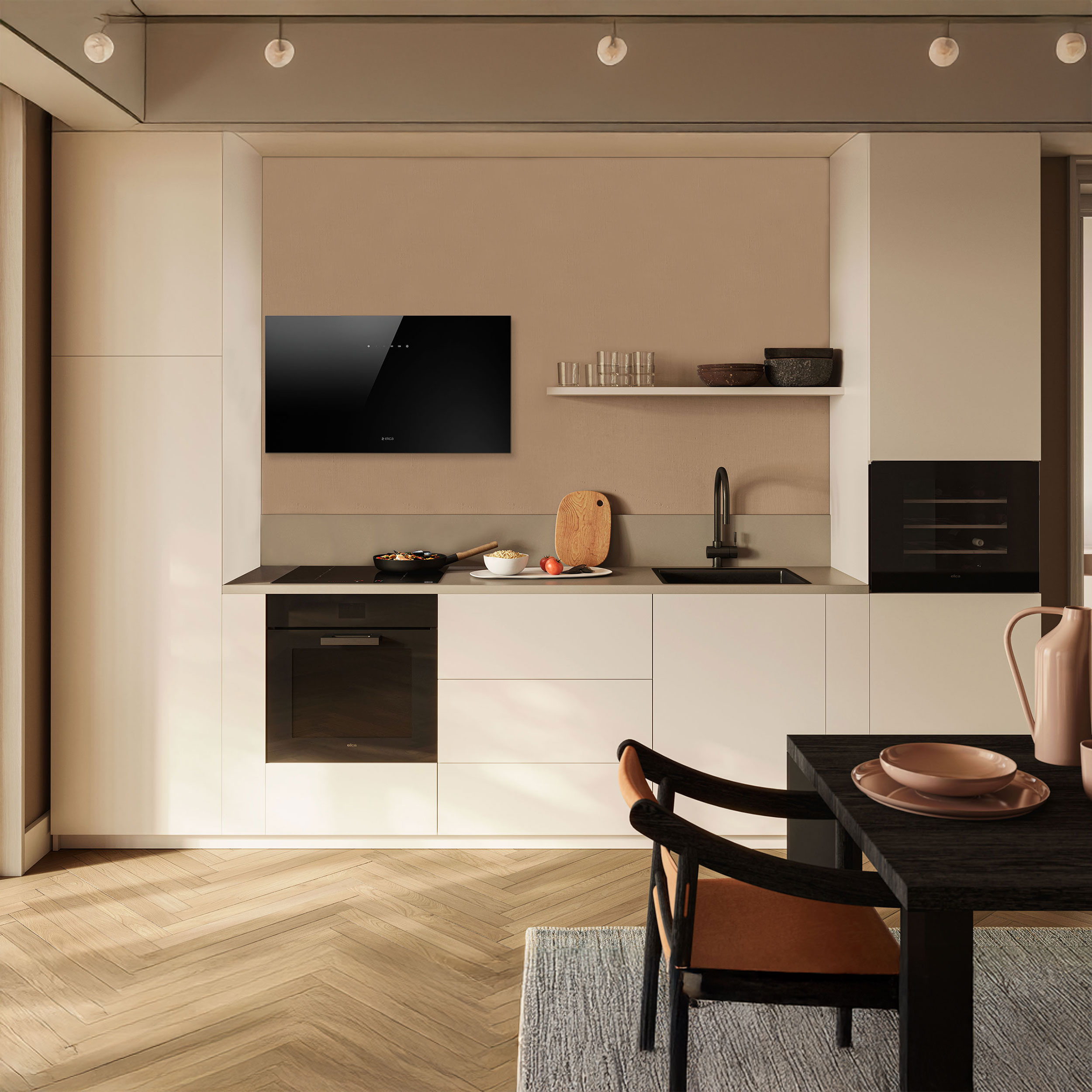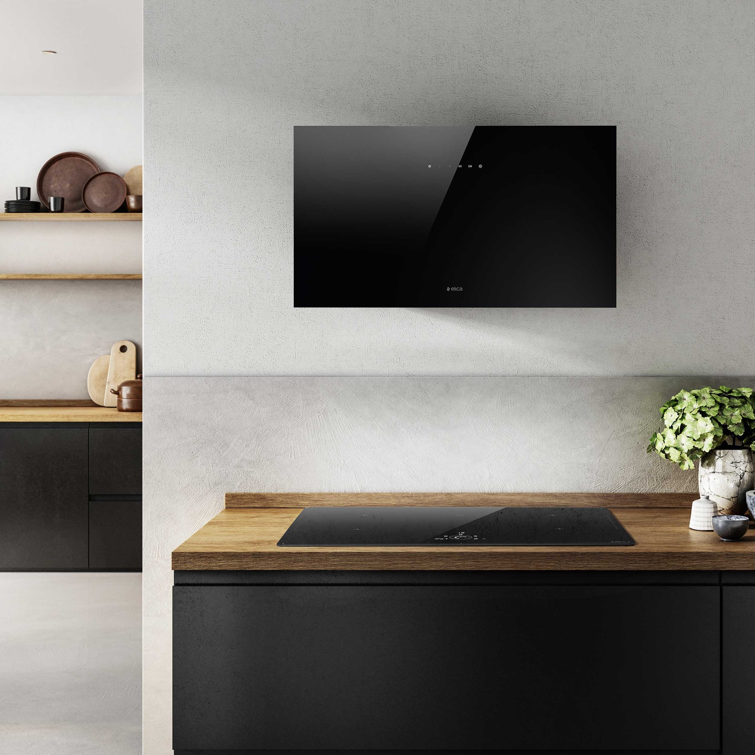 Prisbelönt väggfläkt – Svart glas – 800 mm – Energiklass A