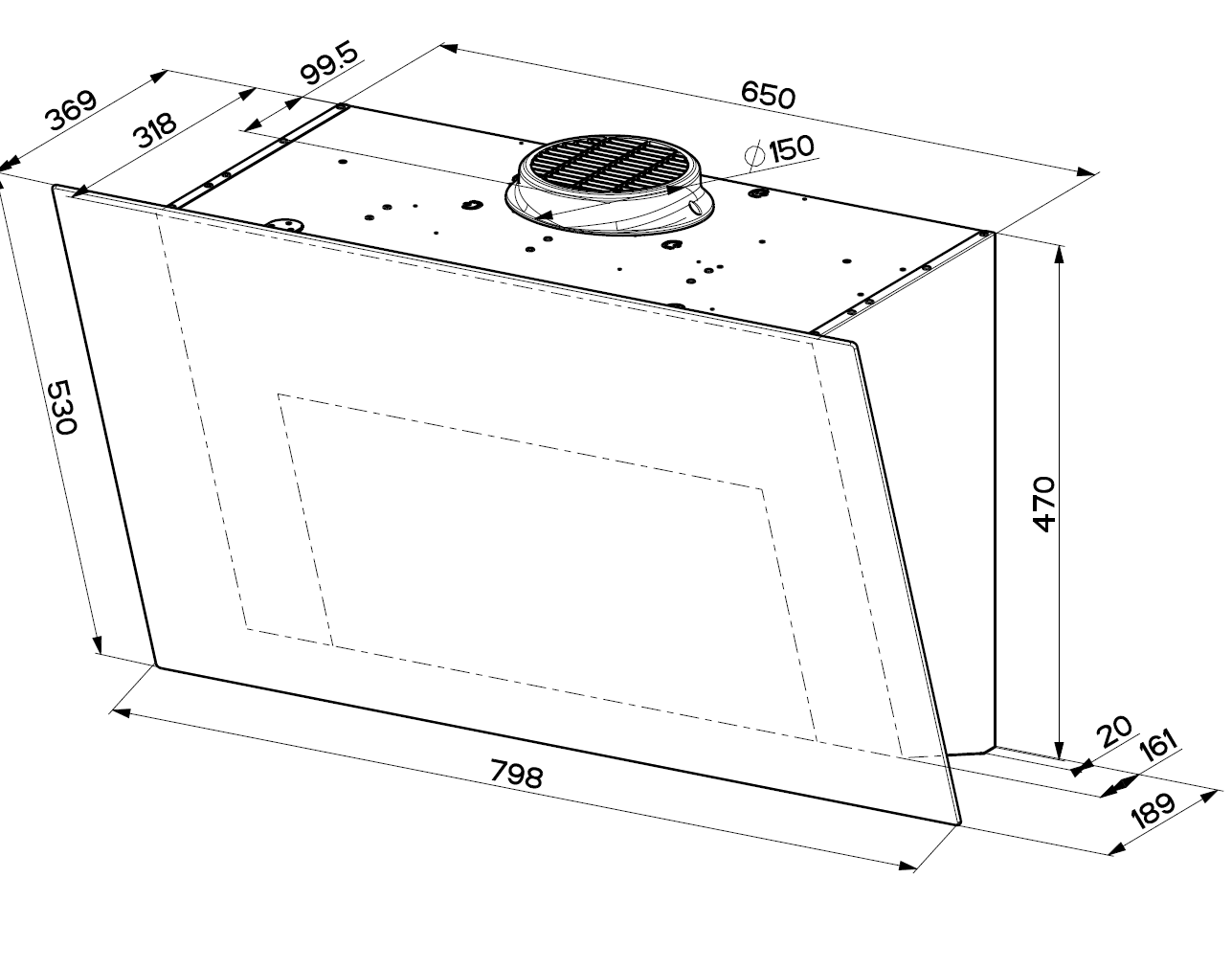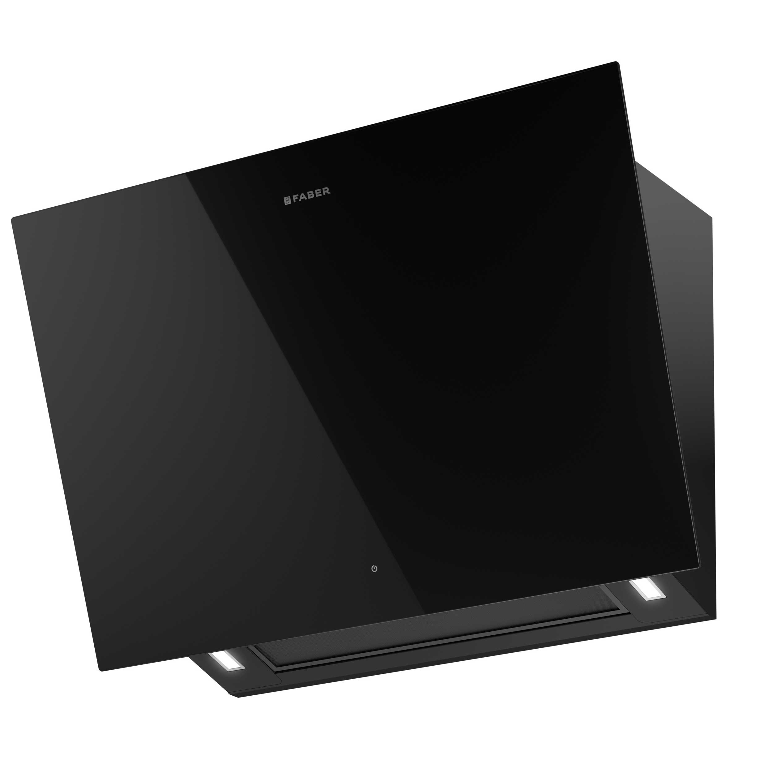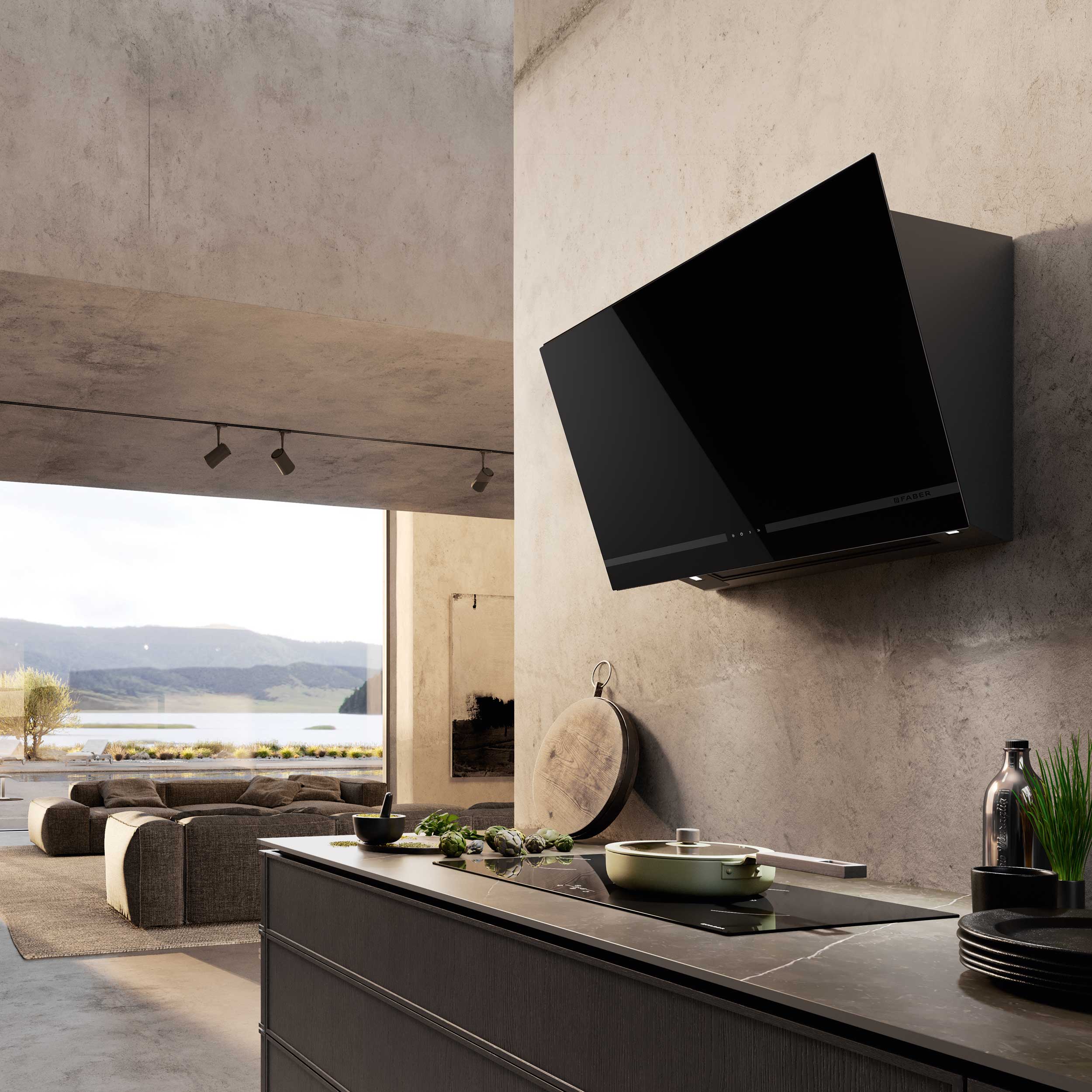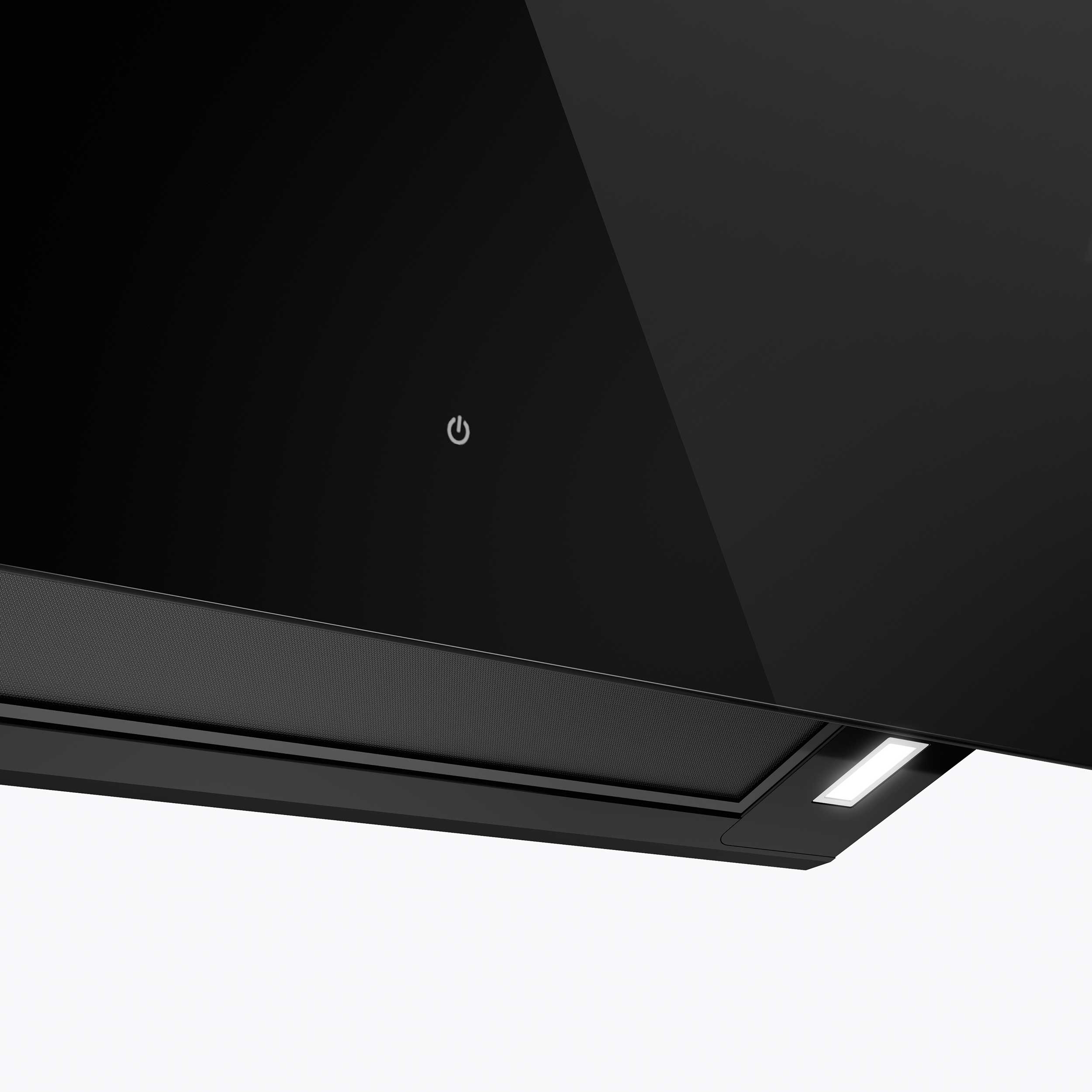 Väggmonterad köksfläkt, vertikal. Med inbyggd motor - Svart / svart glas - 800mm - A
