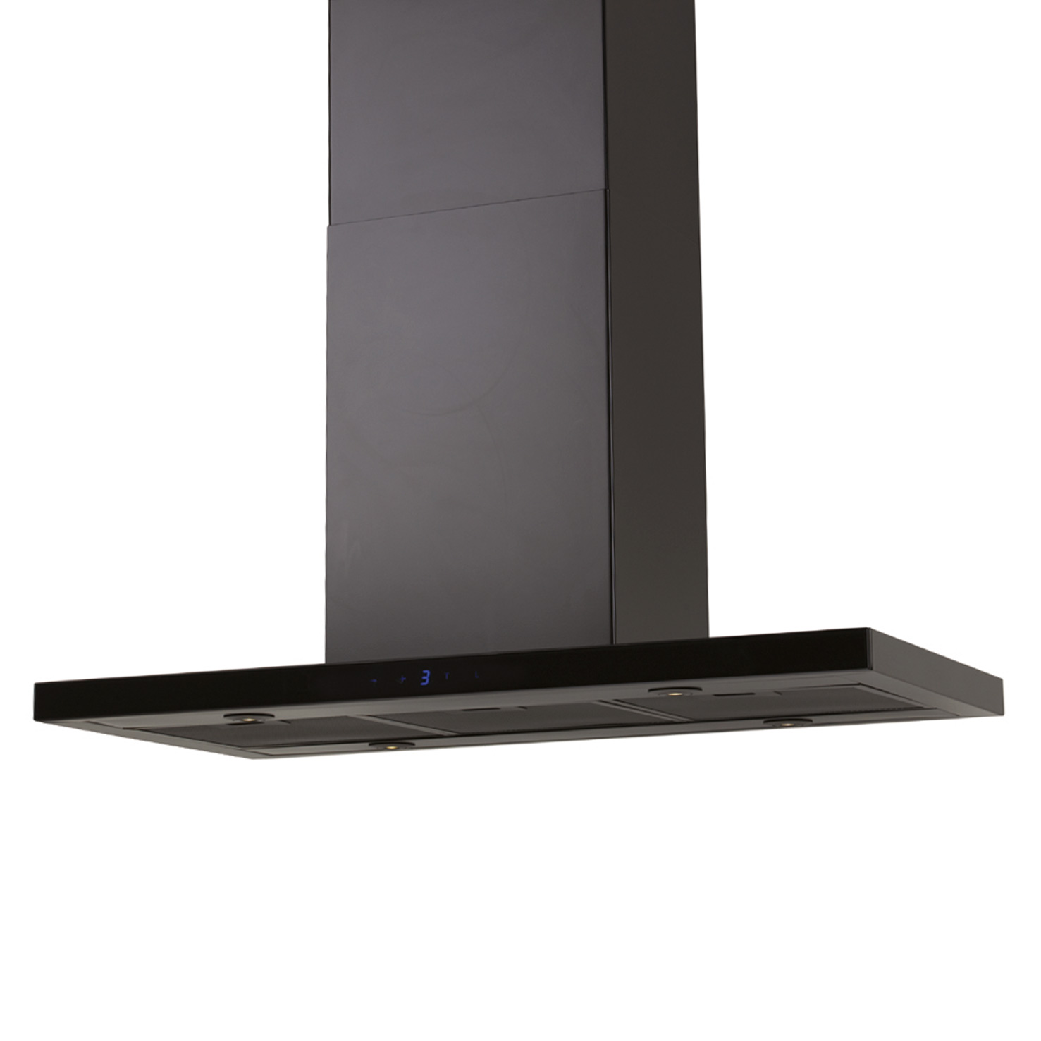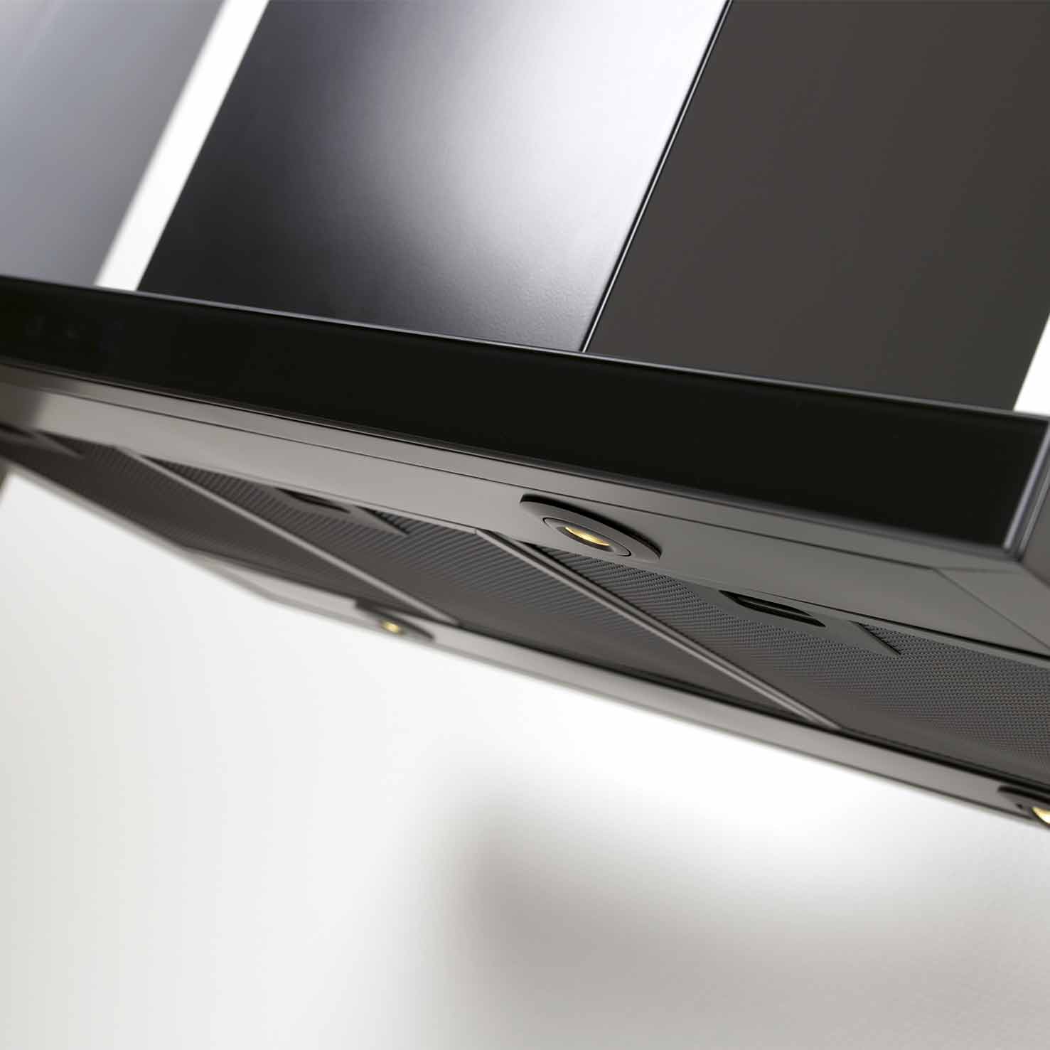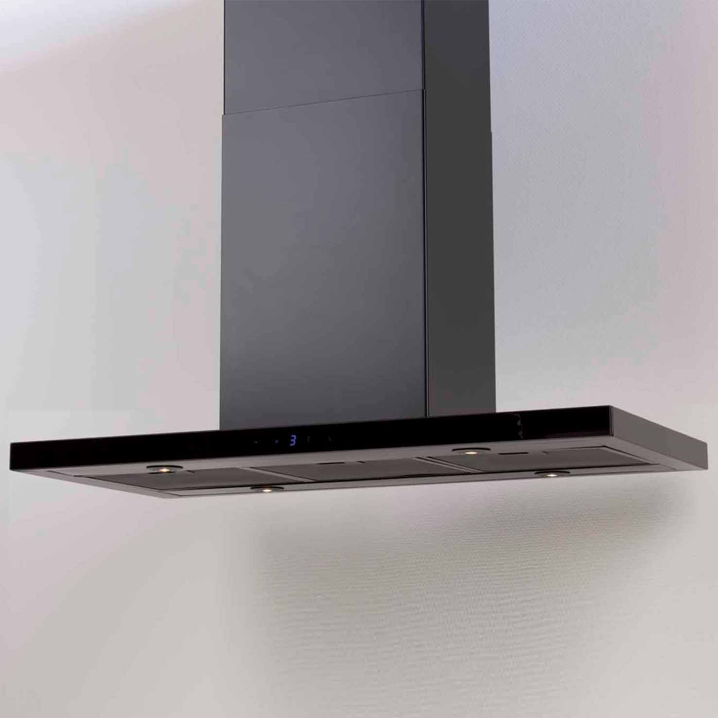 Frihängande köksfläkt. Med extern motor för invändig montering - Svart / svart glas - 900mm