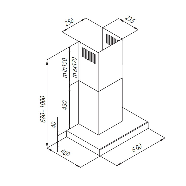 - Produkt (BxDxH) 600 x 400 x 680 - 1000 mm