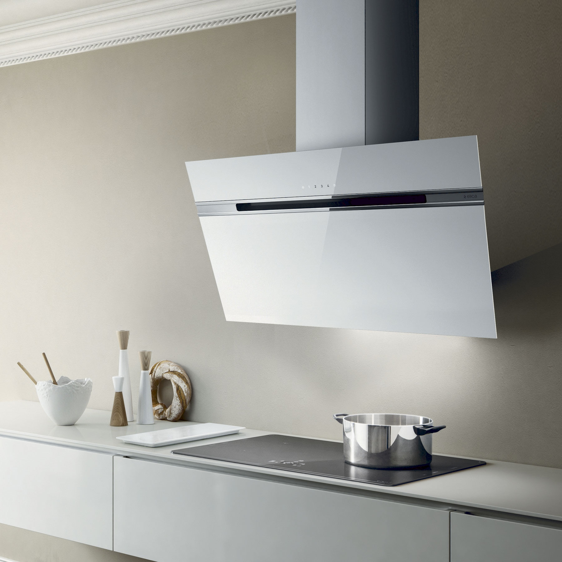 Vægmonteret emhætte, skråtstillet - Med indbygget motor - Hvid - Bredde 800 mm