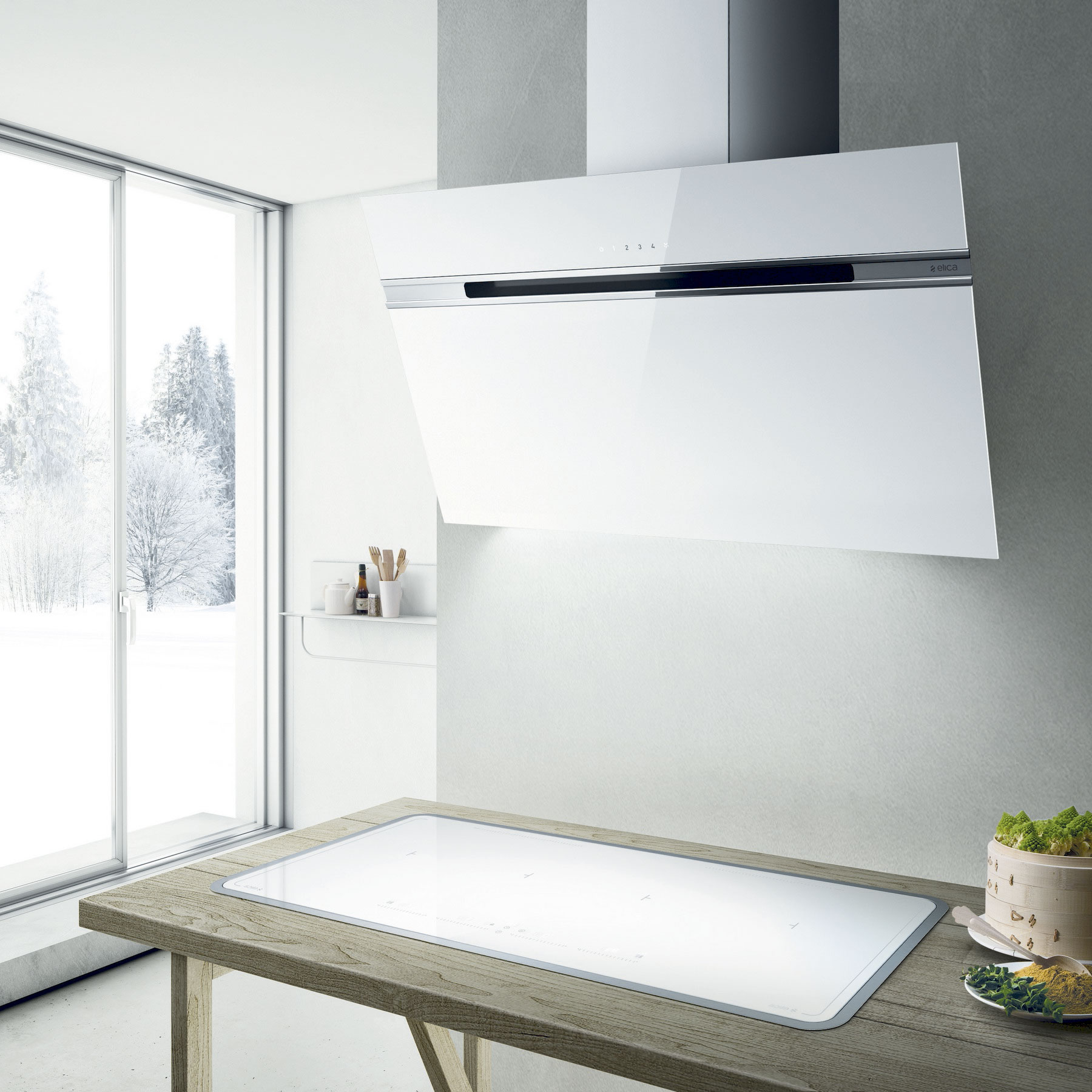 - Skråtstillet emhætte sørger for god arbejdsdybde