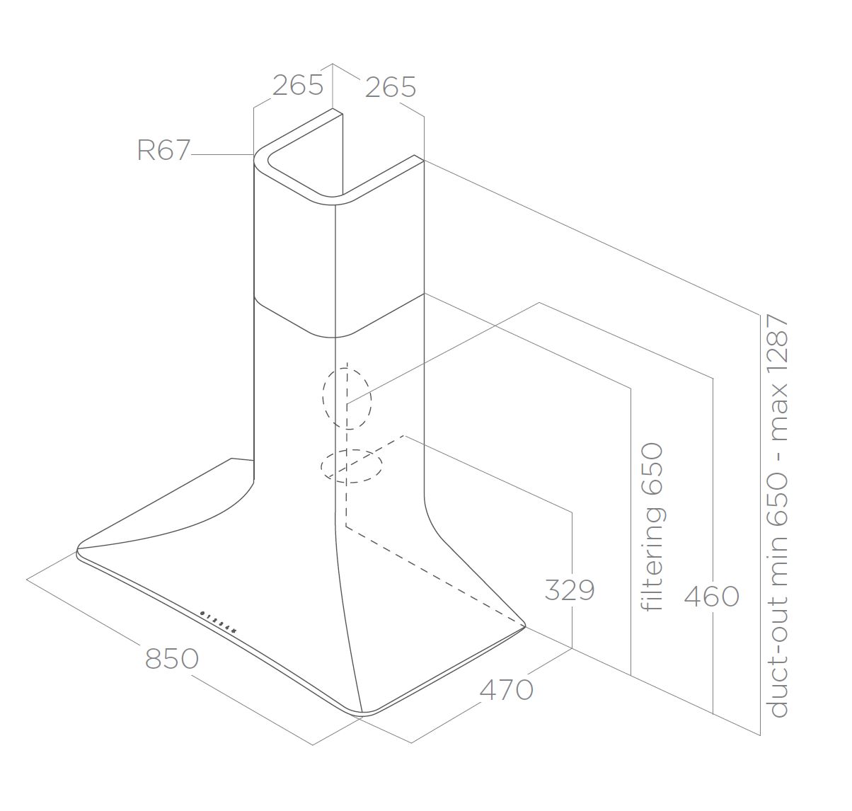 - Produkt (BxDxH) 850 x 470 x 1287 mm