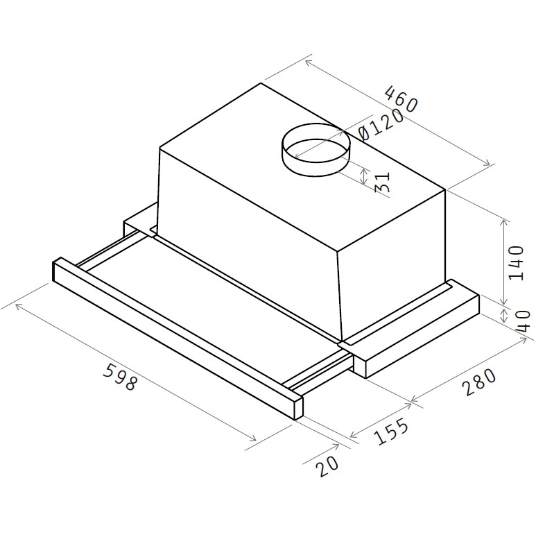 Utdragbar fläkt - Med inbyggd motor - Stål - Bredd 600 mm
