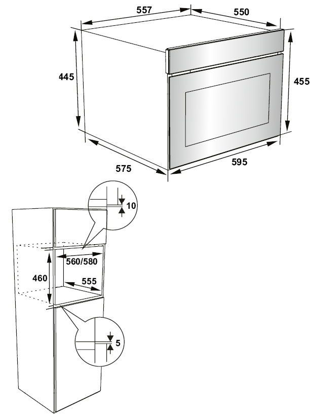 - Produkt (BxDxH) 595 x 575 x 455 mm