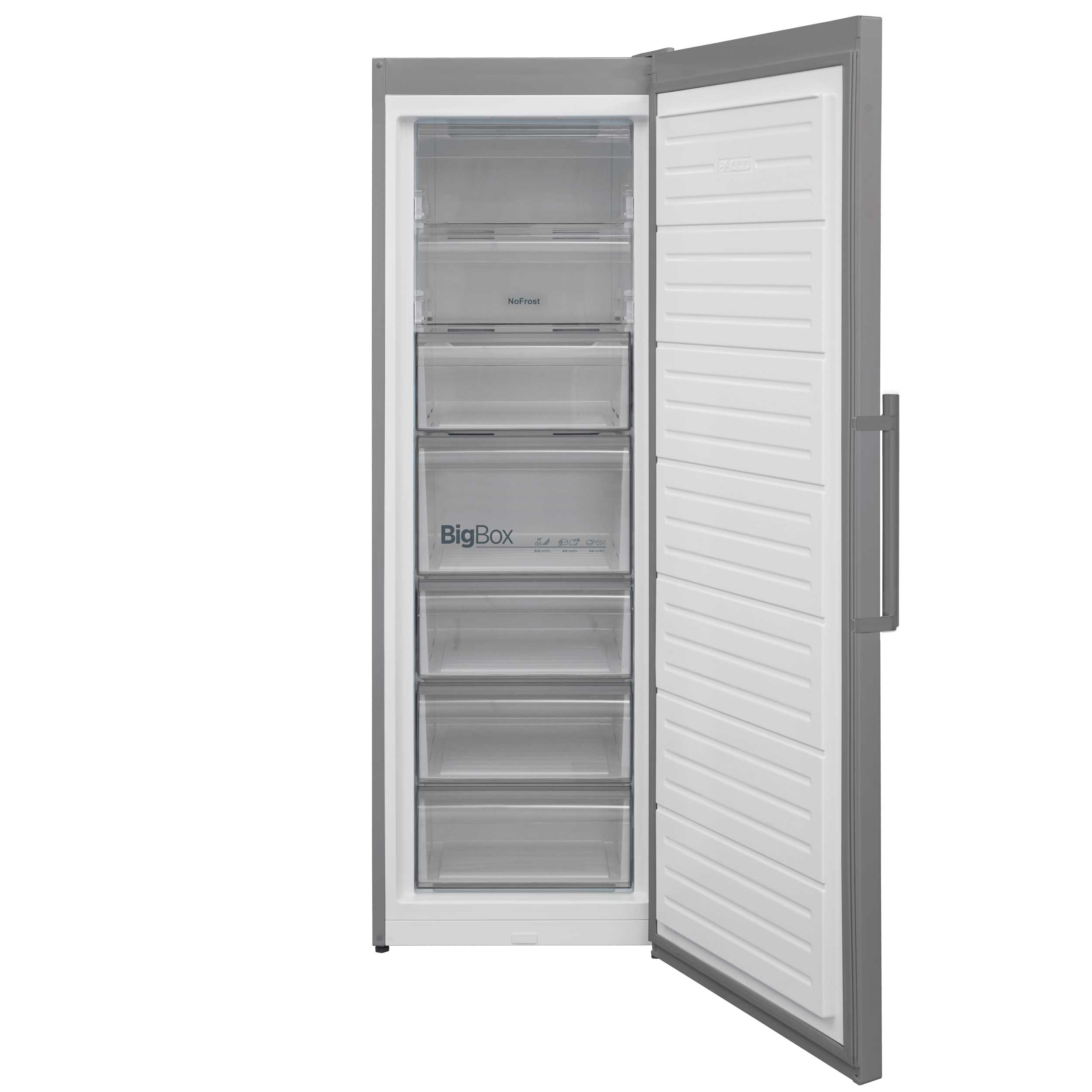 Rustfri NoFrost fryser – 186 cm – LED-lys og display