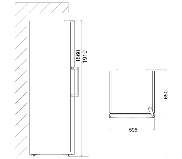 - Produkt (BxDxH) 595 x 650 x 1860 mm