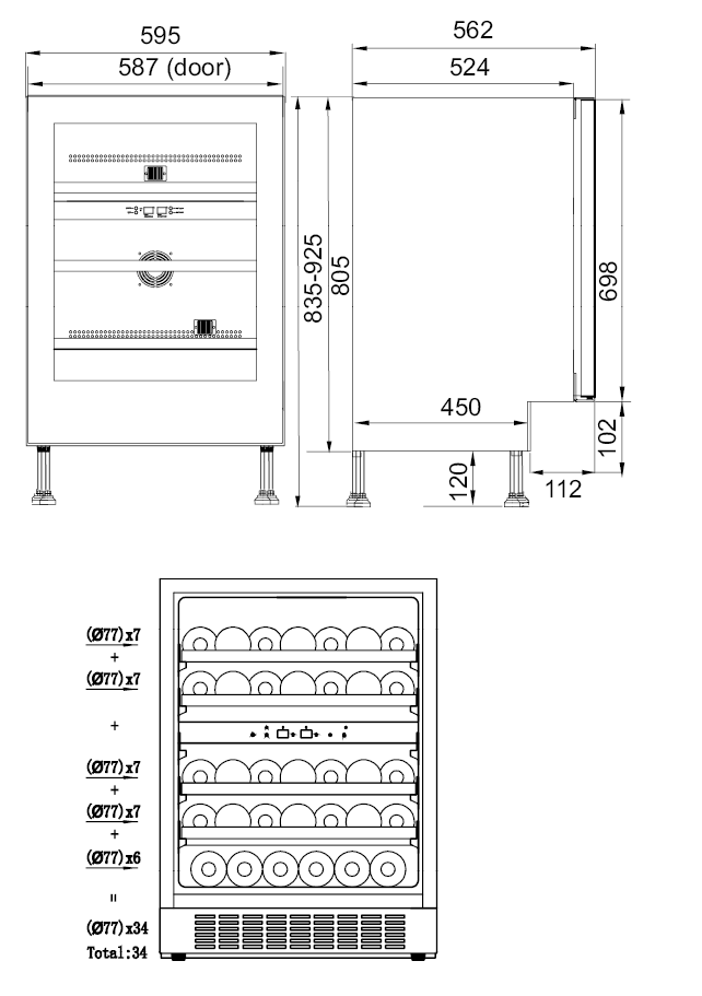 - Nettokapacitet för max. 34 flaskor